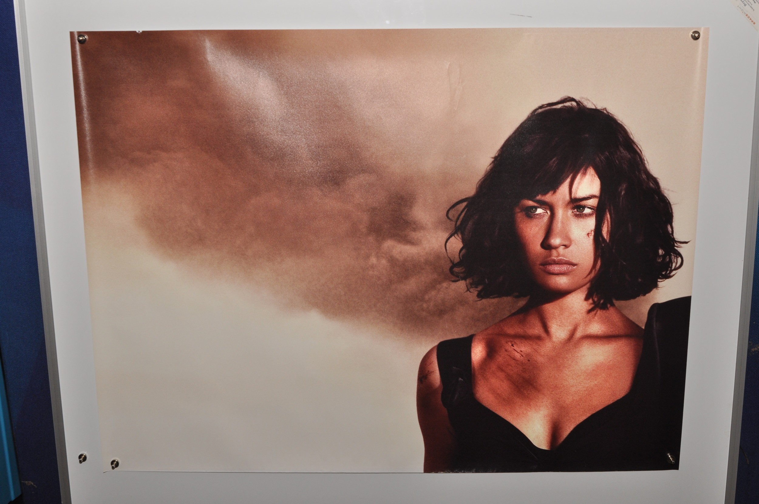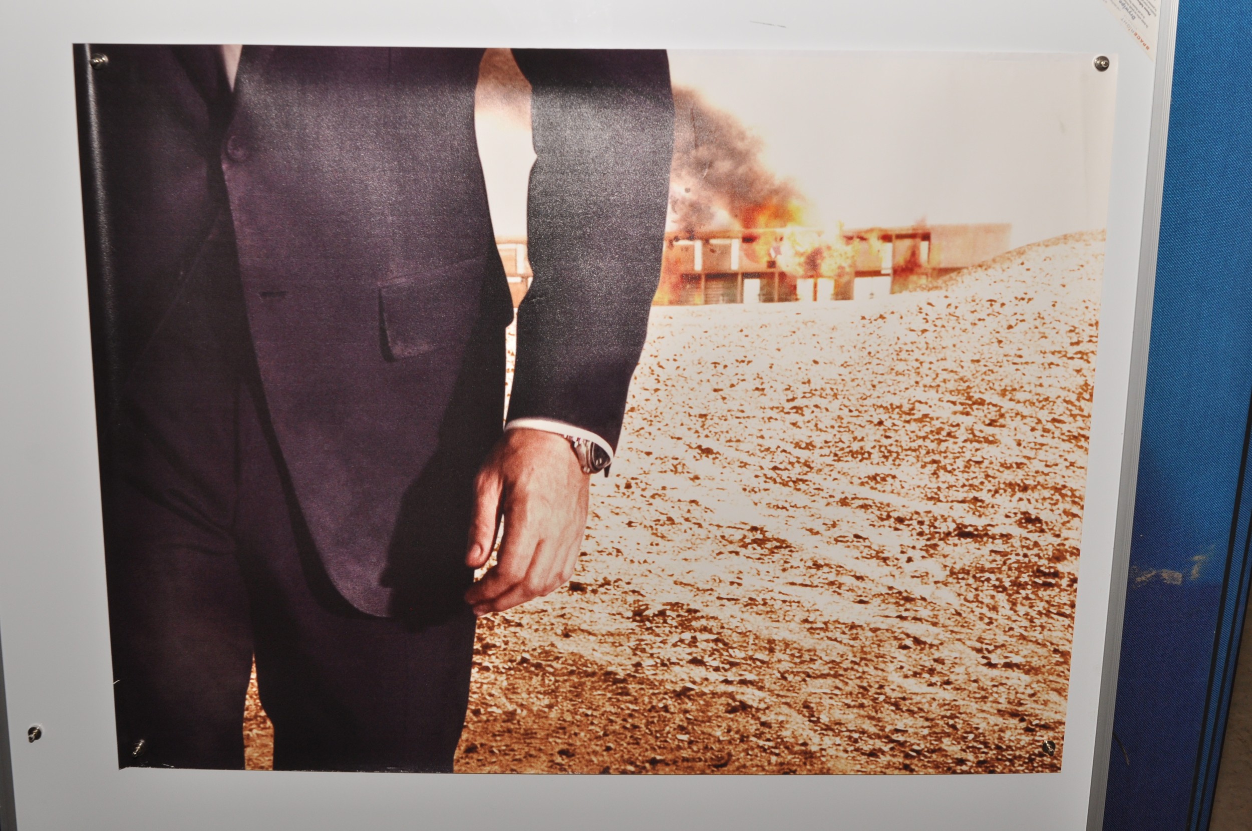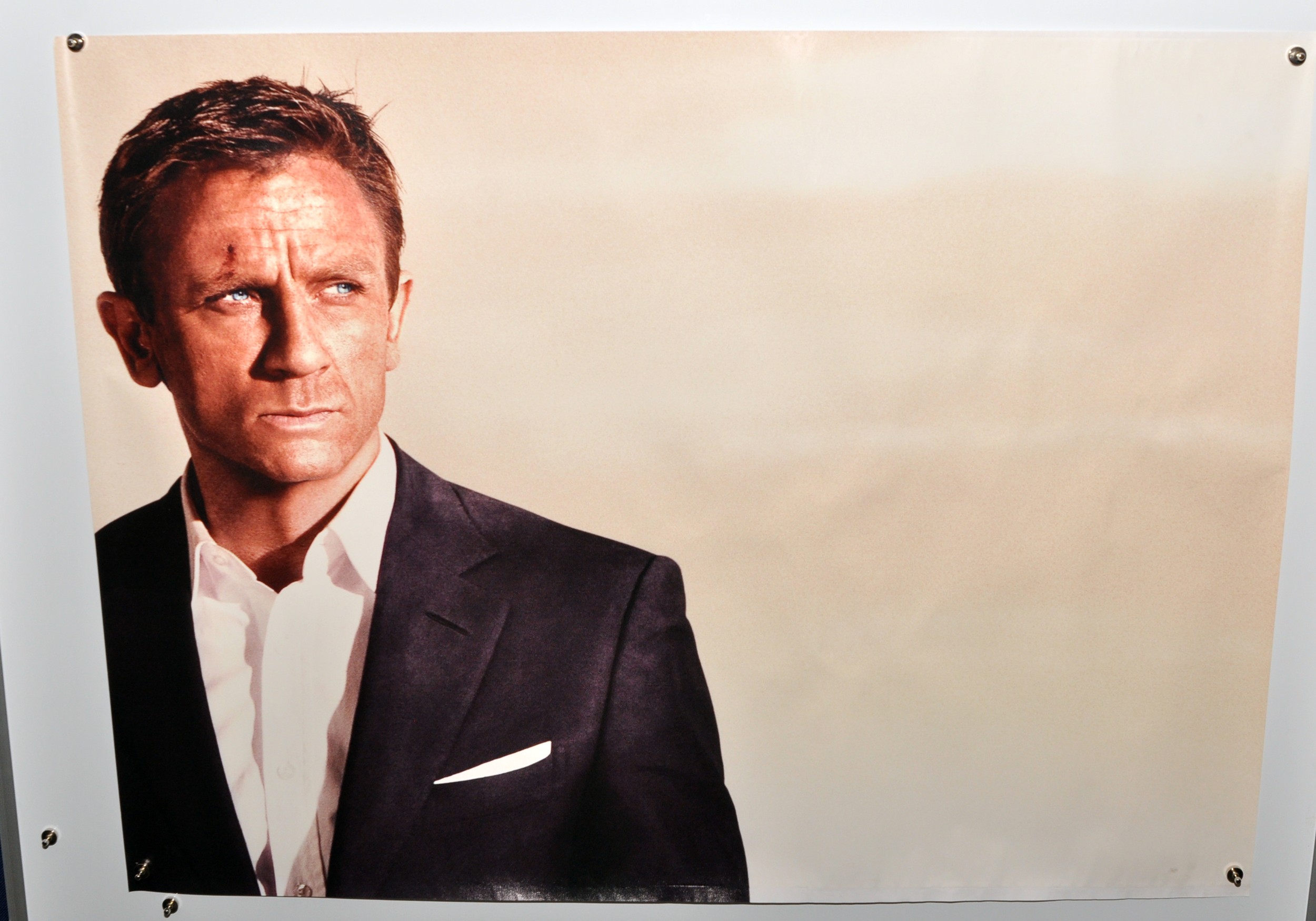 The panels form the image of Daniel Craig and his companion Camille (Olga Kurlylenko) as a determined pair after destruction has been left in their wake in the form of the burning futuristic hotel in the Atacama Desert in Chile that features at the end of the film.