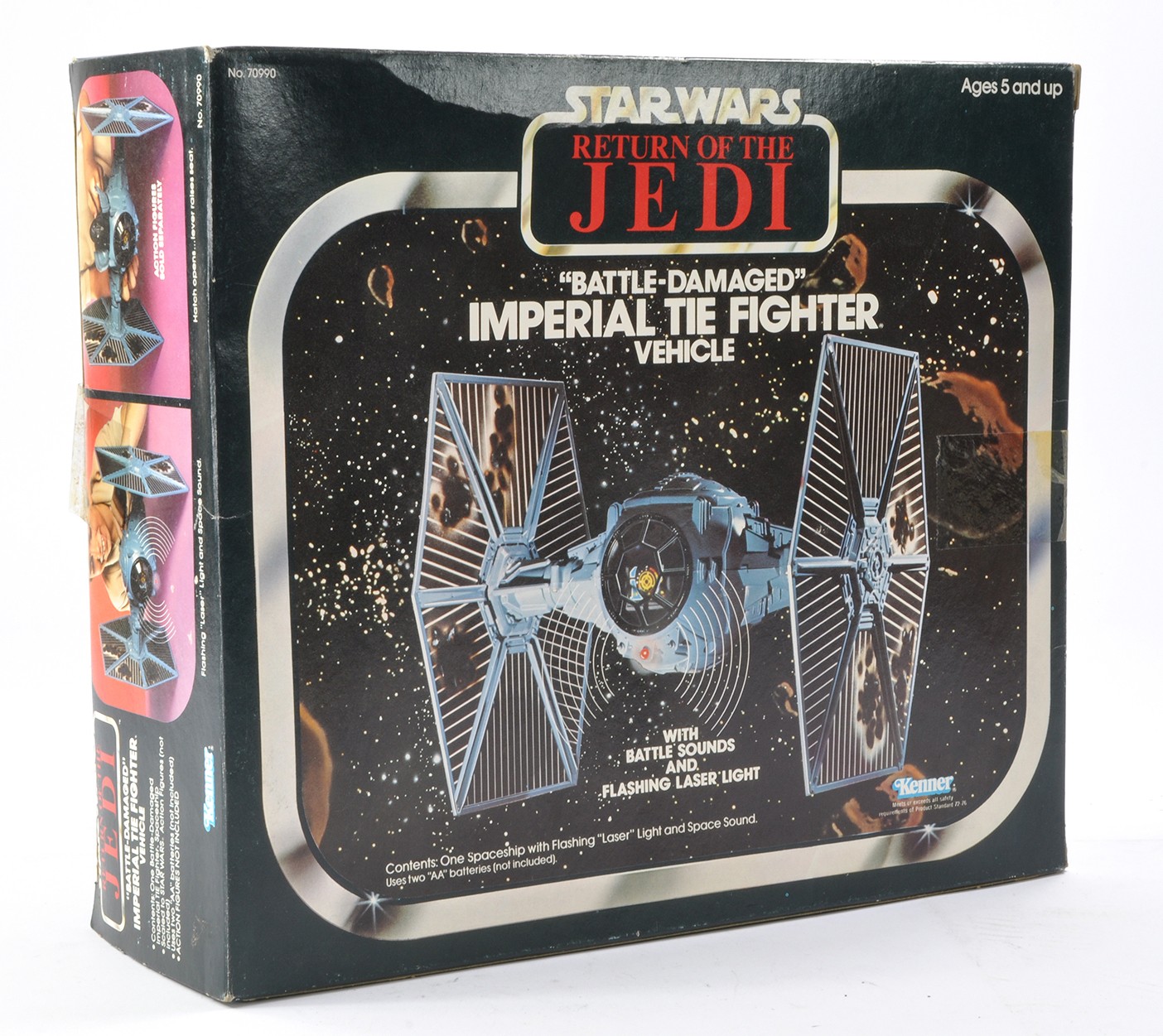 Kenner Star Wars 1983 issue comprising Item No. 70990 Return of the Jedi "Battle Damaged " Imperial Tie Fighter vehicle. Factory sealed, hence assumed unused and excellent in original box . Box is very good to excellent with minor storage wear.