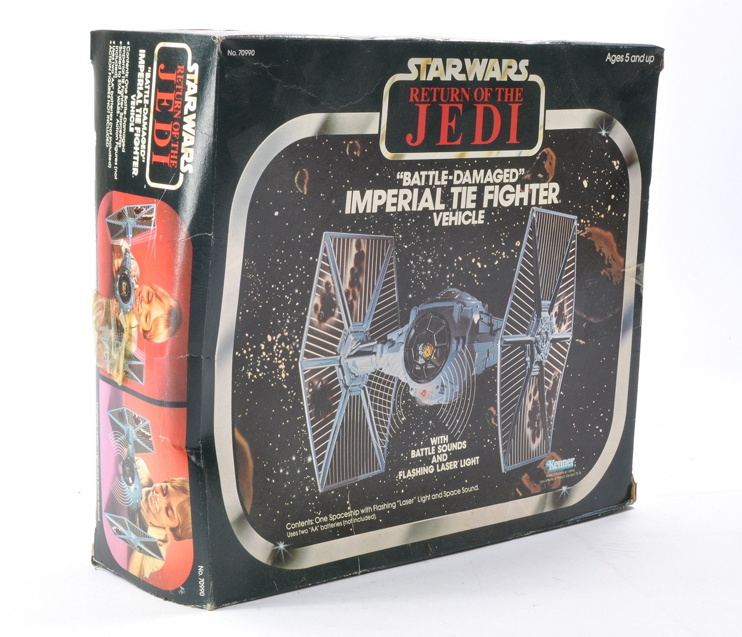 Kenner Star Wars 1983 issue comprising Item No. 70990 Return of the Jedi "Battle Damaged " Imperial Tie Fighter vehicle. Factory sealed, hence assumed unused and excellent in original box . Box is good with some crushing and other minor storage wear.